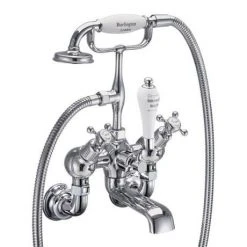 This Wall mounted angled Mixer comes with a “S Adjuster” so the shower handset can be mounted in a choice of two positions, images of both are available.