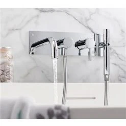 Crosswater brings slimline styling for maximum impact in the Wisp range. This floor standing Thermostatic Bath Shower Mixer with Kit from Crosswater features a stylish lever design and is beautifully finished in polished chrome. Requires a minimum water pressure of 2.0 bar for best performance. All Crosswater taps carry a 15 year guarantee.