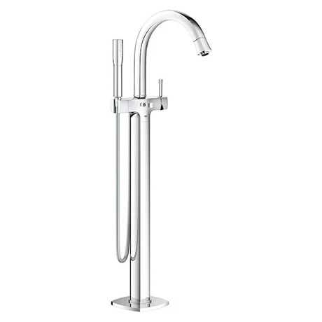 The Grohe Grandera Floor Mounted Bath Shower Mixer is the perfect compliment for any freestanding bath. Its timeless design and attractive chrome finish give it that eye-catching appeal. The tap features GROHE SilkMove cartridge technology for smooth and precision handling of water temperature and flow while the GROHE StarLight chrome coating makes it super easy to clean. Includes hand shower wall mount, Grandera hand shower and Silverflex 1250mm shower hose.