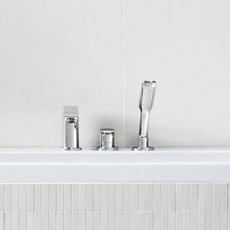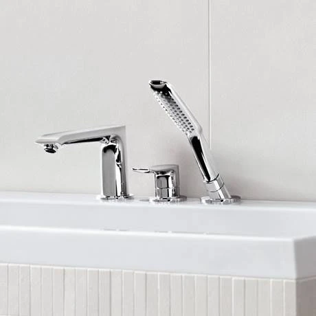 Sleek and elegant, the Metris 3-Hole Deck Mounted Single Lever Bath Mixer will fit in seamlessly into any modern bathroom. Your tap will look beautiful and stay working for longer thanks to the QuickClean rub clean aerator loosening any limescale deposits while AirPower technology adds generous amounts of air to the water, creating a soft, splash-free spray. Consists of 3-hole deck mounted single lever bath mixer, hand shower, shower hose and shower holder.Â