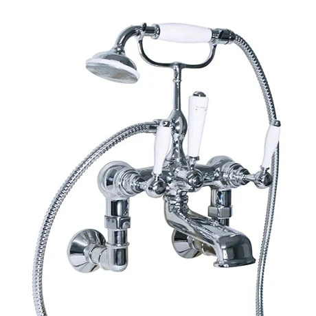 Create your own unique style statement with the Imperial Radcliffe Chrome Wall Mounted Bath Shower Mixer with White Levers. Manufactured from brass and beautifully finished in gleaming chrome, the tap features white ceramic lever handles and comes supplied with matching shower handset and hose.