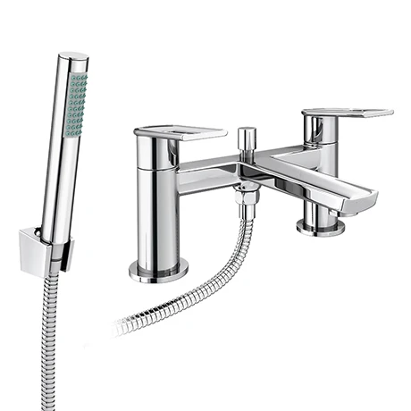 The sleek modern bath shower mixer tap from our Valencia collection will transform your bathroom with it’s clean lines and distinctive contemporary lever handle design. It’s sturdy brass body and chrome finish ensure a cutting-edge aesthetic and impressive durability. It’s modern design will bring a touch of sophistication to your bathroom. Includes a shower kit consisting of a round hand held shower head, wall bracket and flexible hose.