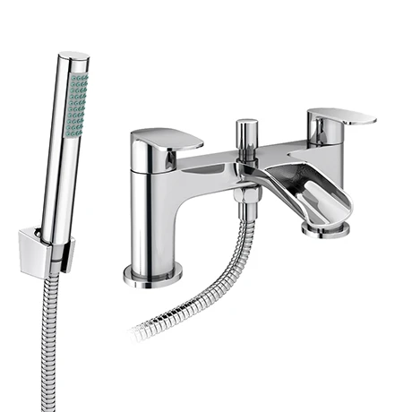 The sleek modern waterfall bath shower mixer tap from our Valencia collection will transform your bathroom with it’s clean lines and elegant open spout which allows the water to cascade into your bath creating a beautiful waterfall effect. It’s sturdy brass body and chrome finish ensure a cutting-edge aesthetic and impressive durability. It’s modern design will bring a touch of sophistication to your bathroom. Includes a shower kit consisting of a round hand held shower head, wall bracket and flexible hose.